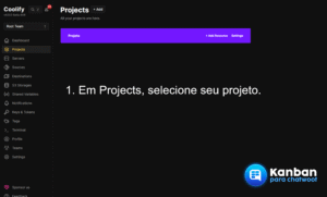 Vamos te ensinar a instalar o Kanban para Chatwoot usando o Coolify nesse tutorial. Siga o passo a passo com atenção para que funcione corretamente. Navegue até “Projects” no