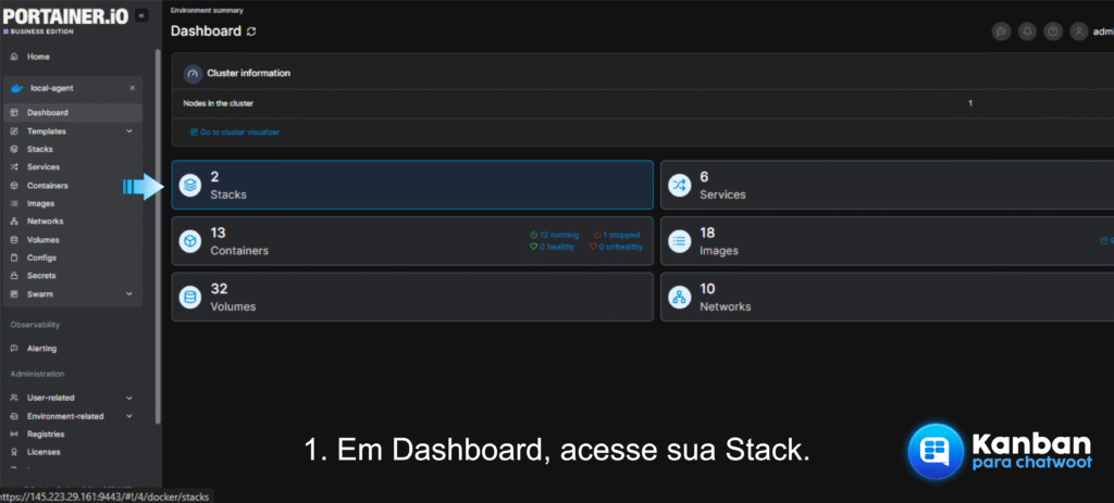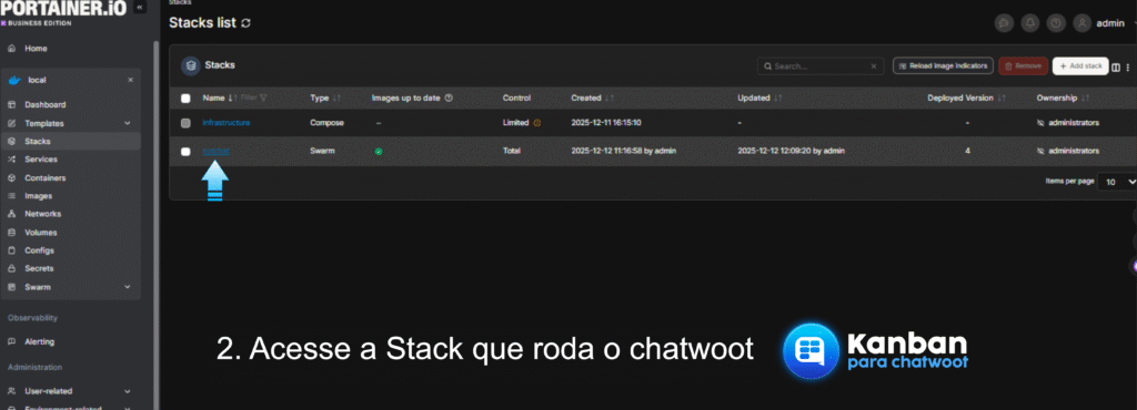 Passo 2: Acesse a stack que roda no Chatwoot